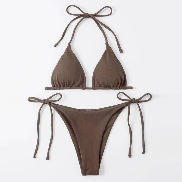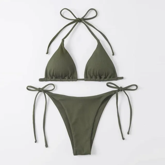 Swimsuit 3 Piece Set Women Solid Color Triangle Cup Tie Up Sexy Bikini Top With Skirted Bottoms Bathing Suit Cutout Biquinis
