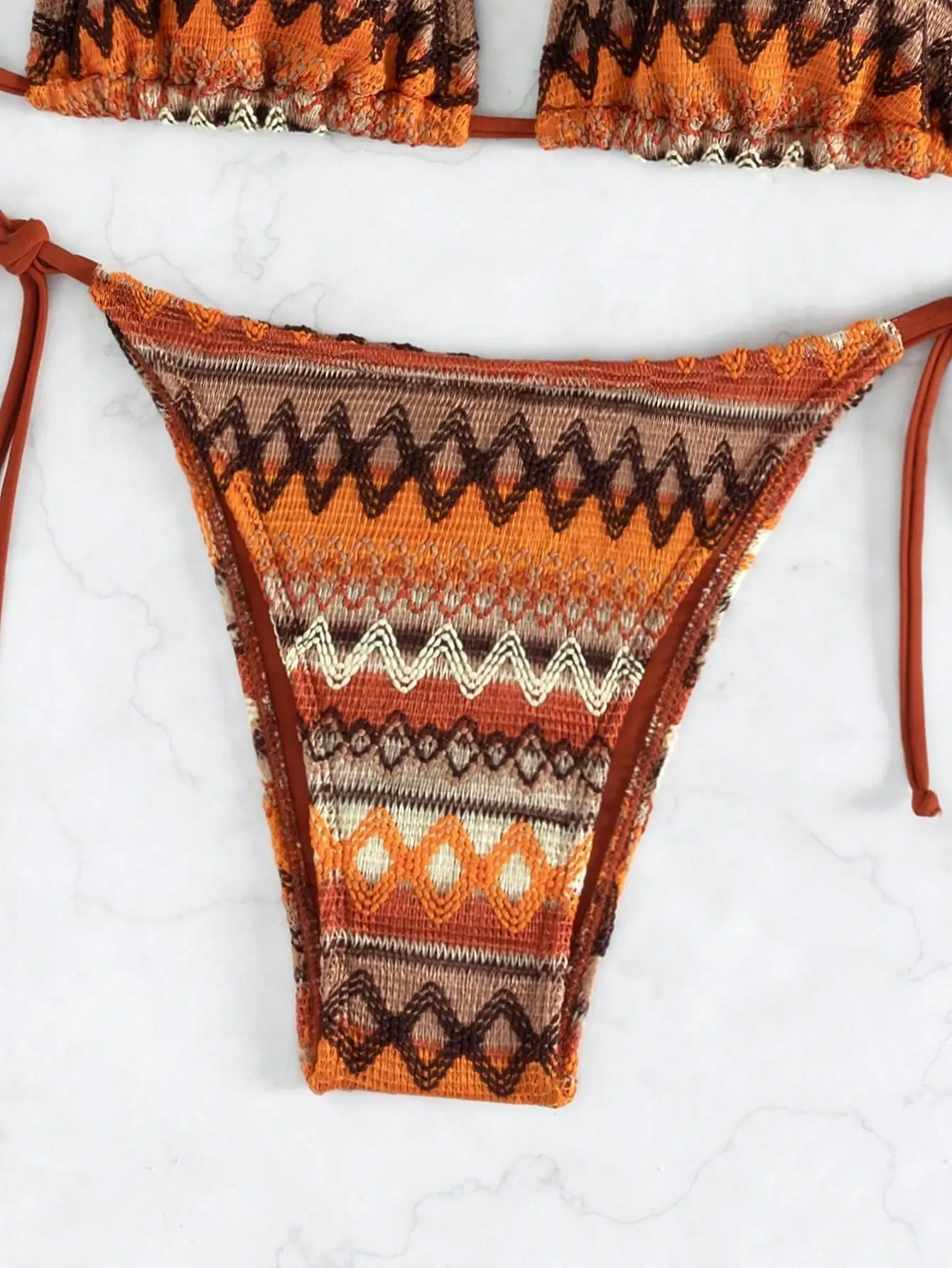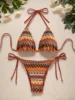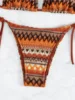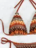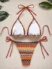 2024 Women’s 2-piece Swimsuit Sexy Knitted Striped Bikini Set Triangle Bra Suspender Halter Backless Beach Vacation Swimwear