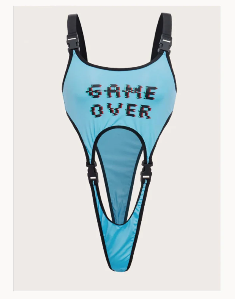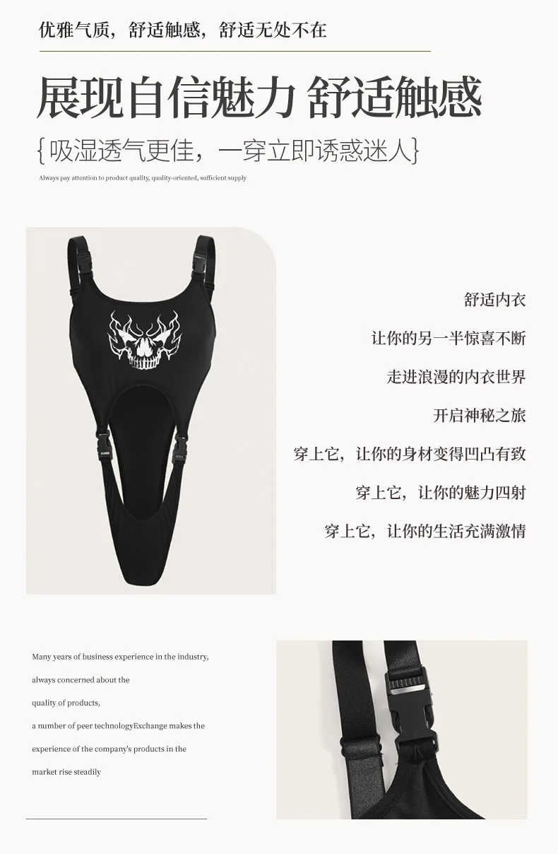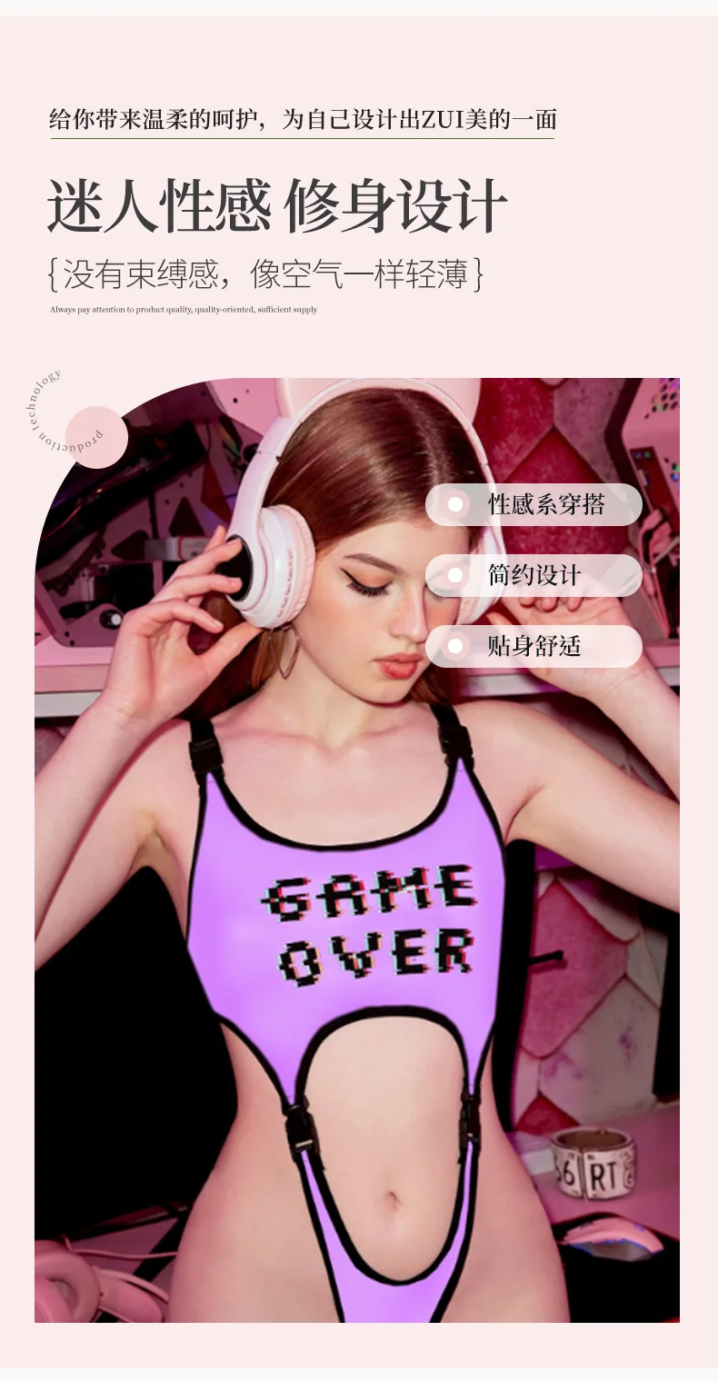 Anime Slogan Graphic Buckle Decor Teddy Bodysuit Lingerie Women’s Sexy One-Piece Teddy Lingerie