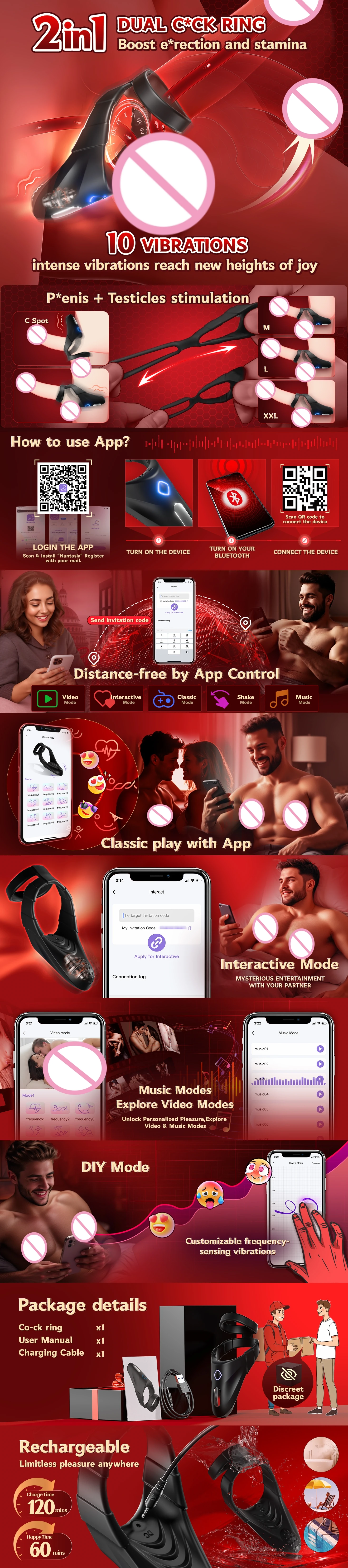 Vibrating Cock Ring, Penis Ring Sex Toys with 10 Vibration Settings, Adult Sex Toys for Men Male Vibrator for Men Pleasure with App, Dual Cock Rings for Men Erection Sex Cock Ring Vibrators