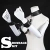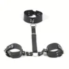 BDSM Bondage Restraints Set Neck to Wrist – Behind Back Handcuffs Collar with Blindfold Adjustable Bondage Gear & Accessories