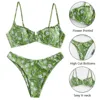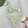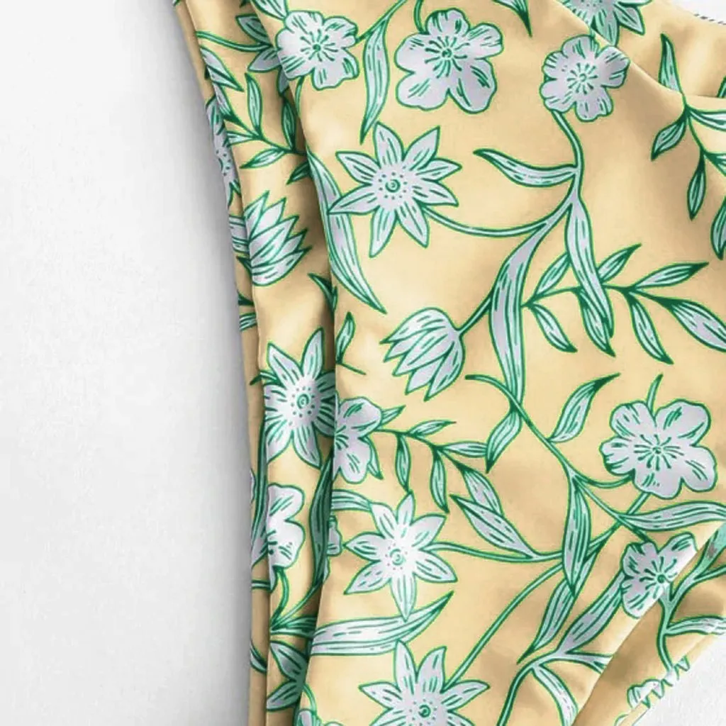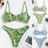 Women Flower Print High Cut V Neck Two Pieces Bikini Swimwear Swimsuit Beachwear
