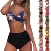 Women High Waisted Bikini Sexy Push Up Two Piece Swimsuits Vintage Swimsuit Two Piece Retro Ruched High Waist Print Bikini Set