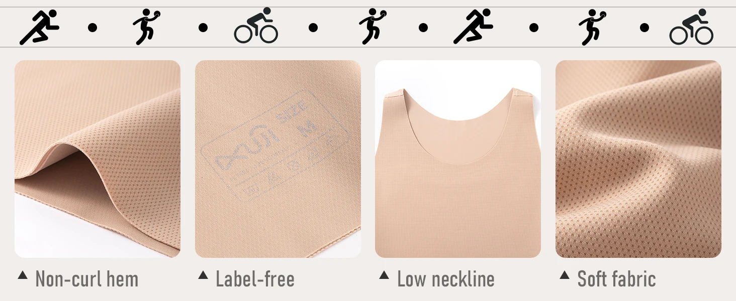 【EXCELLENT SUPPORT AND COMPRESSION】: It is a sports binder that meets all needs. Featuring a new sandwich construction, the trans binder is made of high stretch fabric that is soft and comfortable, provides the comfort and support you need for yoga, running and fitness without restricting your movement or breathing. Wear freely and unrestricted, close to the skin to flatten the chest without too much compression. Highly elasticated bottom that won't move or roll up when you wear it.