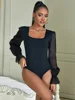Comeondear Long Sleeve Mesh Leotard Bodysuits Crotchless Teddy Lingerie Sexy Oversized Pajamas Curve Fashion One Piece Jumpsuit