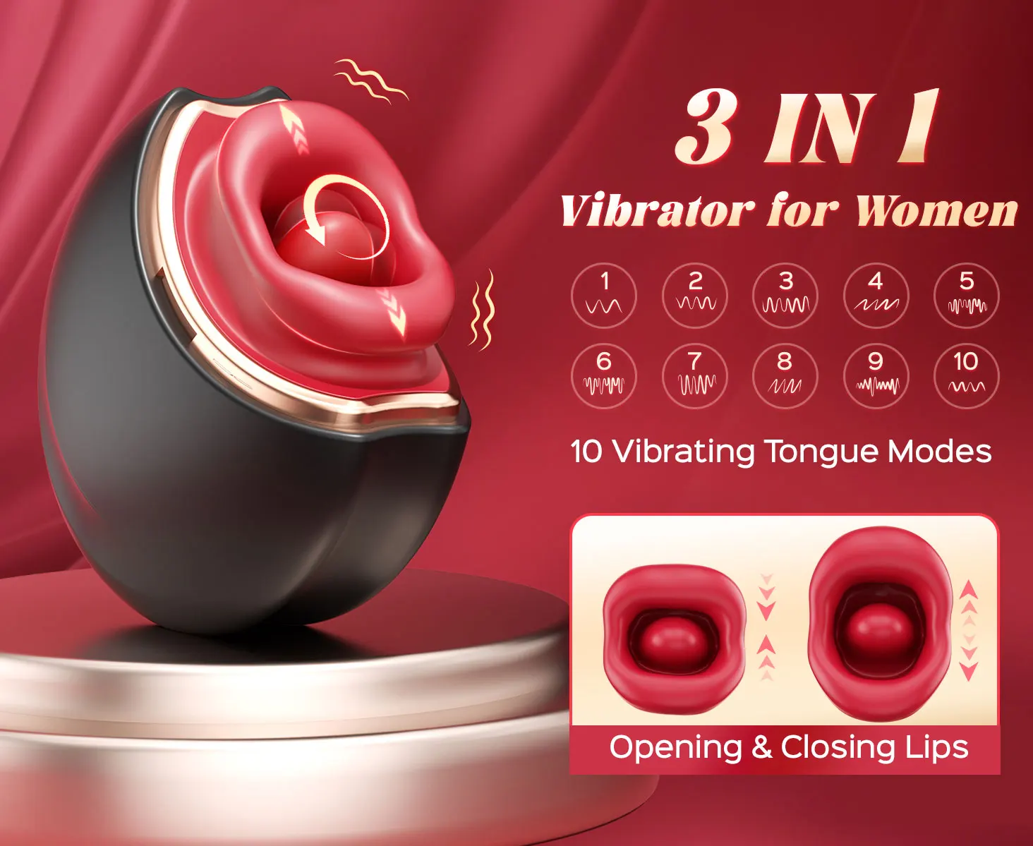 10 Licking and 10 Vibration Modes: With 10 licking patterns and 10 vibration modes, this tongue toy for women provides stimulation that adapts to your personal preferences. The soft silicone tongue offers lifelike oral sensations