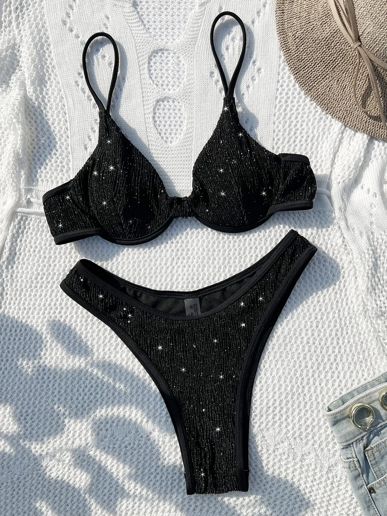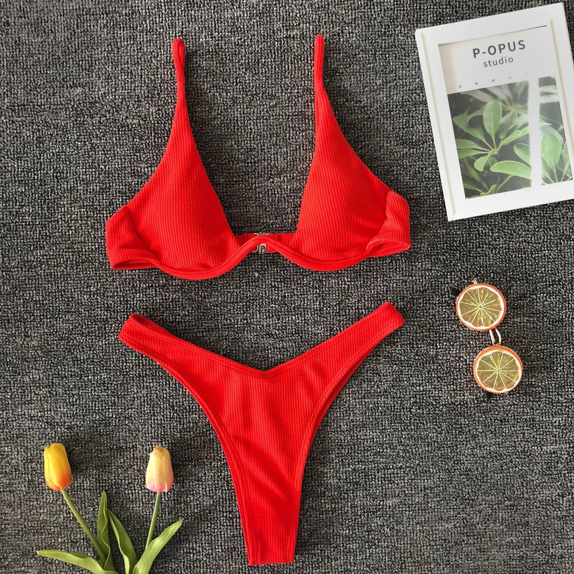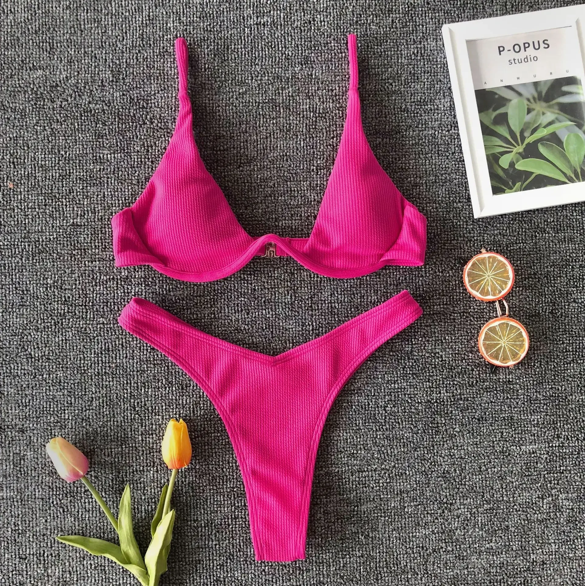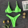 Neon Green Sexy Underwire Bikini Set 2024 Women Solid Leopard Push Up Micro Swimsuit Summer Bathing Suit Thong Swimwear Biquini