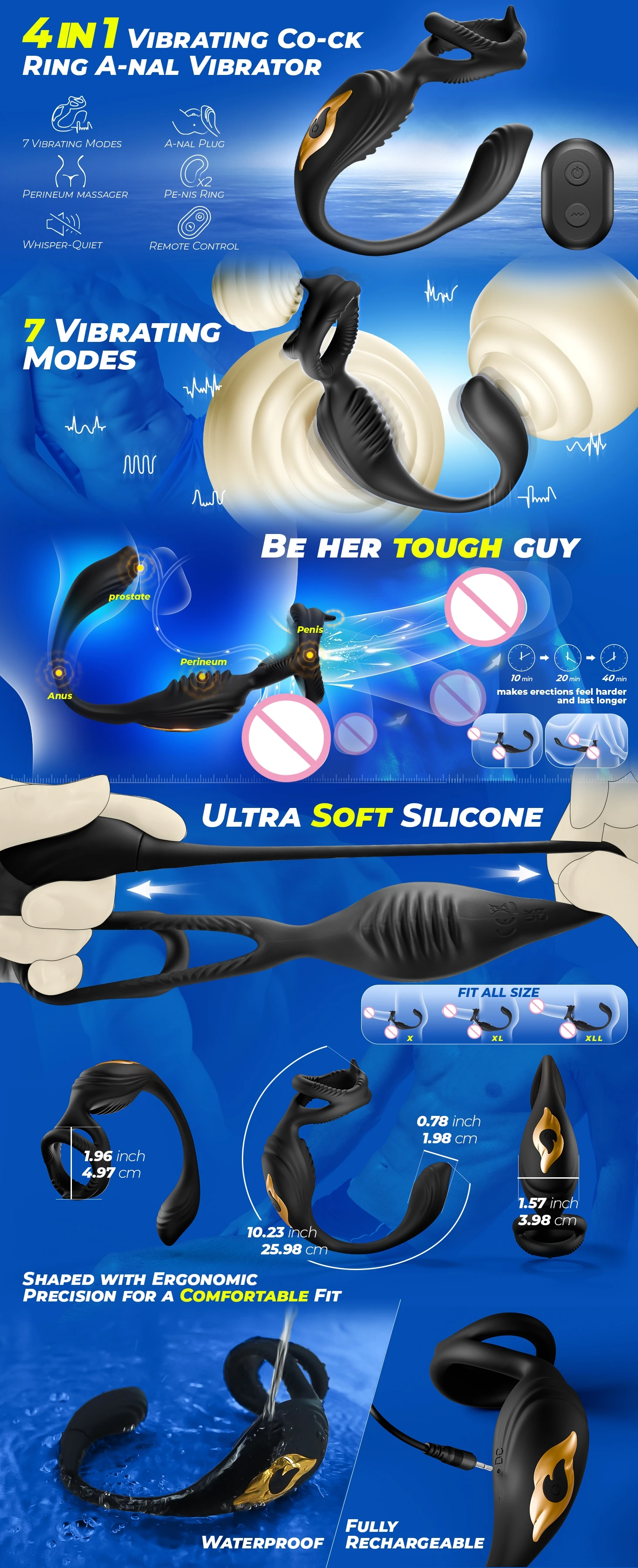 💗【4 in 1 Vibrating Butt Plug & Cock Ring, Set Sail for Your Biggest Orgasm Ever!】Get this anal sex toy, you will have a vibrating penis ring, a testicular stimulator and a bullet anal vibrator, which can meet all your needs for exploring you or your partner's secret garden. The vibrating anal plug & cock ring can flexes to snugly hug your erection. Get great go-long support, plus add in the magic of 9 wild vibration modes that can gently stimulates your backdoor for wilder, better, more inten. This is the ultimate anal sex toys and vibrating butt plug for sex toys lovers.