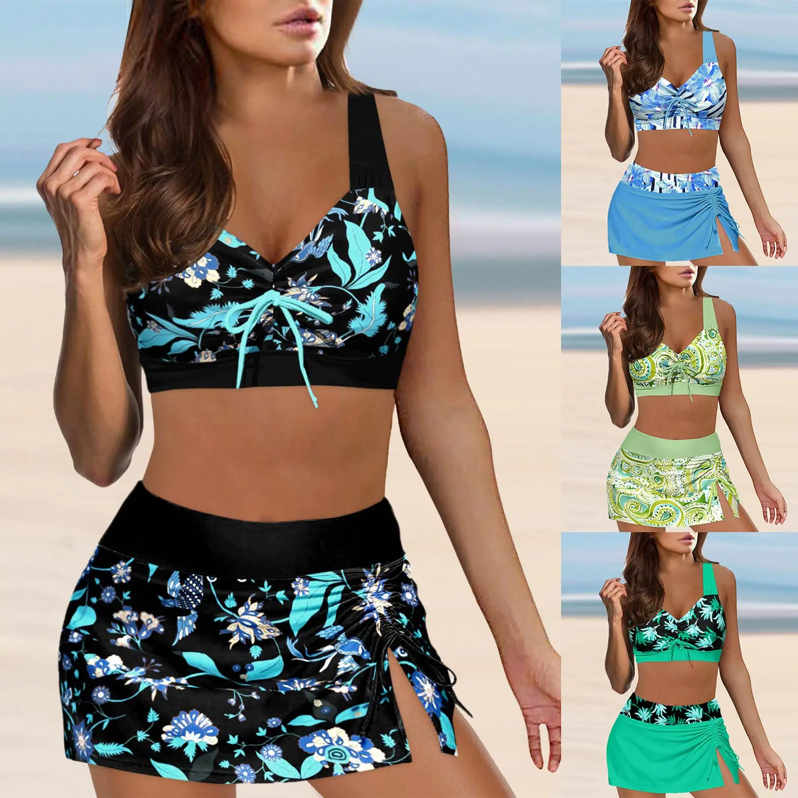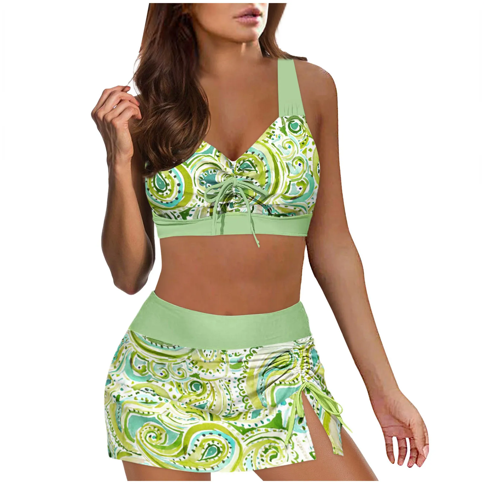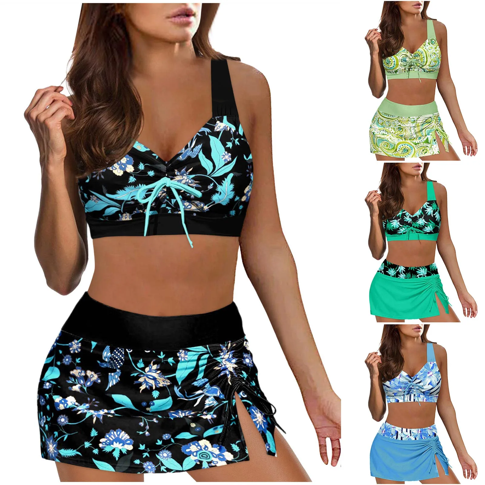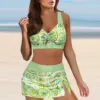 Women High Waisted Bikini Sexy Push Up Two Piece Swimsuits Vintage Swimsuit Two Piece Retro Ruched High Waist Print Bikini Three Piece Set